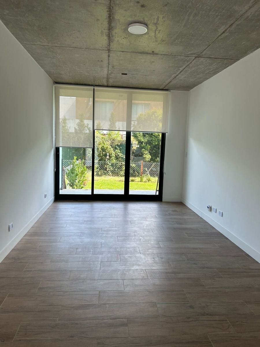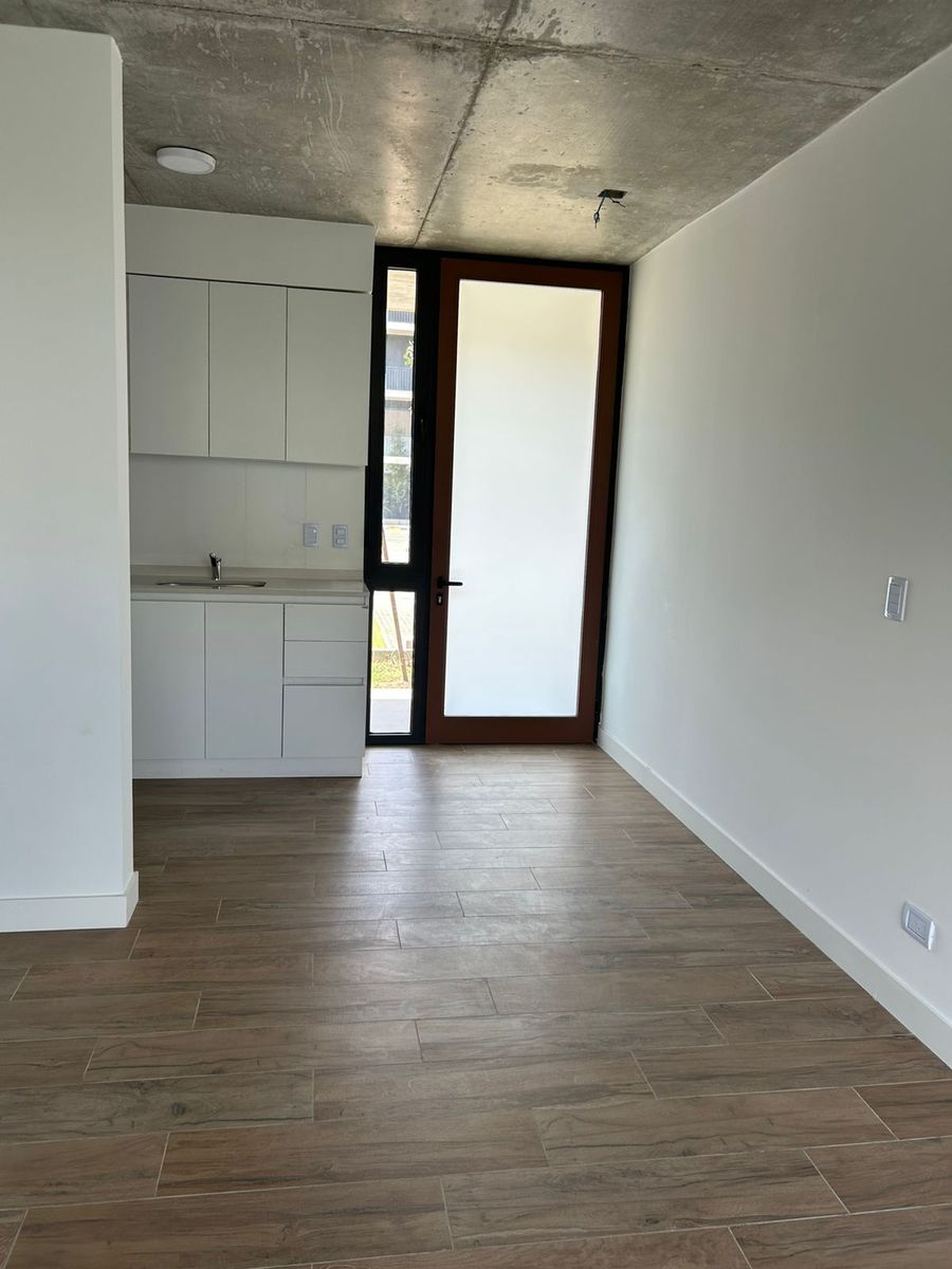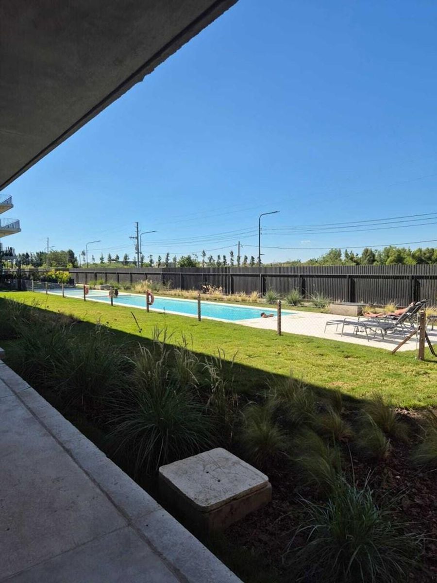 Excelente Departamento de 2 ambientes en planta baja a estrenar. Living Comedor amplio con ventanal que comunica al parque. Cocina integrada con mobiliarios completo, con lugar para lavarropas, Baño con accesorios de alta calidad. Dormitorio con placard, muy luminoso. Aire acondicionado en ambos ambientes, parque recientemente parquizado. Edificio con dos piletas amplias, incluyendo una para niños. Para agendar tu visita envíar whatsapp al 114177-7940.